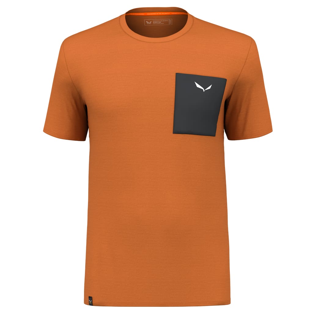 Natural moisture management and soft, wicking comfort. The Salewa Pure Logo Pocket Alpine Merino Men's T-Shirt is made of merino blended with Tencel lyocell sourced from sustainable wood plantations. The natural yarns are reinforced with polyamide for additional durability. This SALEWA Committed product meets our highest sustainability standards. It also effectively prevents odour build-up during alpine trekking or climbing.