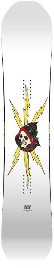- Hybrid Camber: Resort V2 Twin, raised camber platform through the inserts to retain high-speed edge hold through variable terrain, and elevated contact points to land and float in powder
