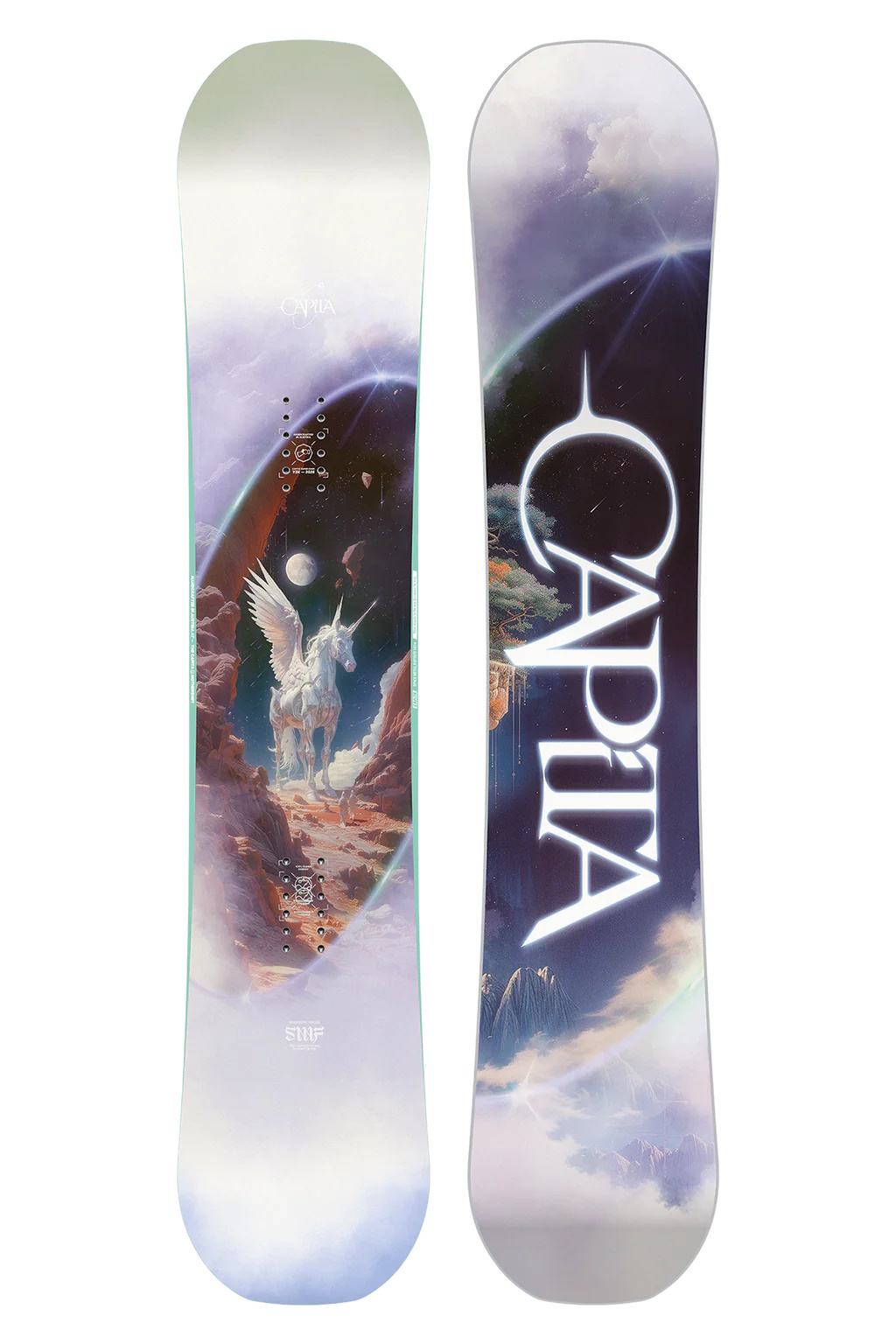 The award winning Space Metal Fantasy is widely regarded as one of the best women's park boards on the market. However, to be fair, labeling it as a park board severely understates its potential. Capita presents it as a park series for classification purposes, but in truth, its much more than that. The Space Metal Fantasy is fun for carving around the slopes, playing on features in the park, and even floats ridiculously well in powder. This very forgiving reverse camber shape provides a fun experience for beginner to intermediate riders looking to expedite the learning curve and take their riding to the next level on many different types of terrain. The Space Metal Fantasy excels in a variety of resort and freestyle terrain with the tried and trusted combination of a Dual Core and Special Blend Fiberglass + Magic Bean Resin.
