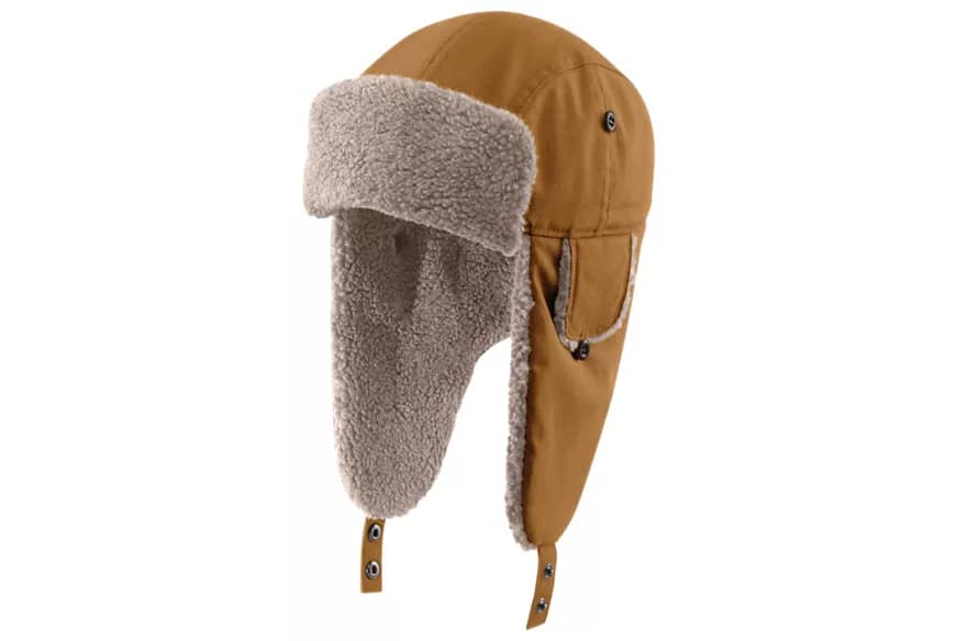 When you spend all day in light rain and snow, this men's Carhartt trapper hat helps keep your mind off the weather. It's built for warmth with a thick sherpa lining and lightweight insulation. Wear it with the ear flaps down to take the sting out of the cold.