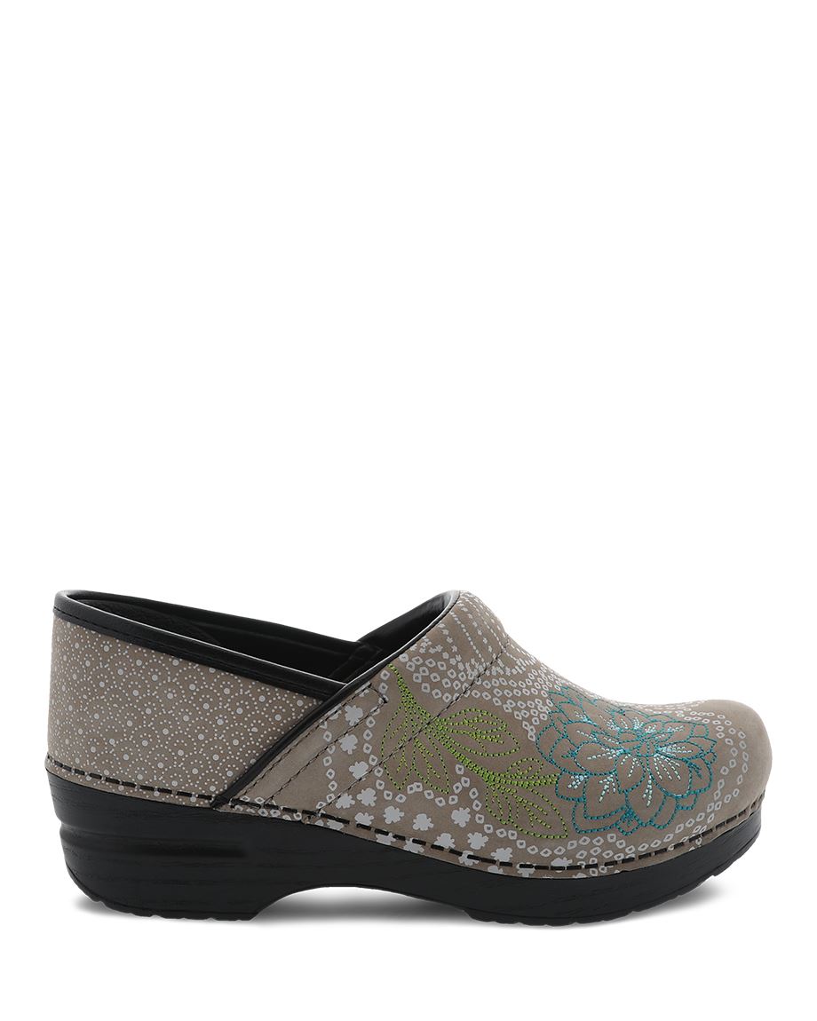 The Embroidered Pro is APMA-accepted, built by hand via stapled construction, and has an anti-fatigue rocker bottom that sets feet in a forward motion for shock absorption and energy return.