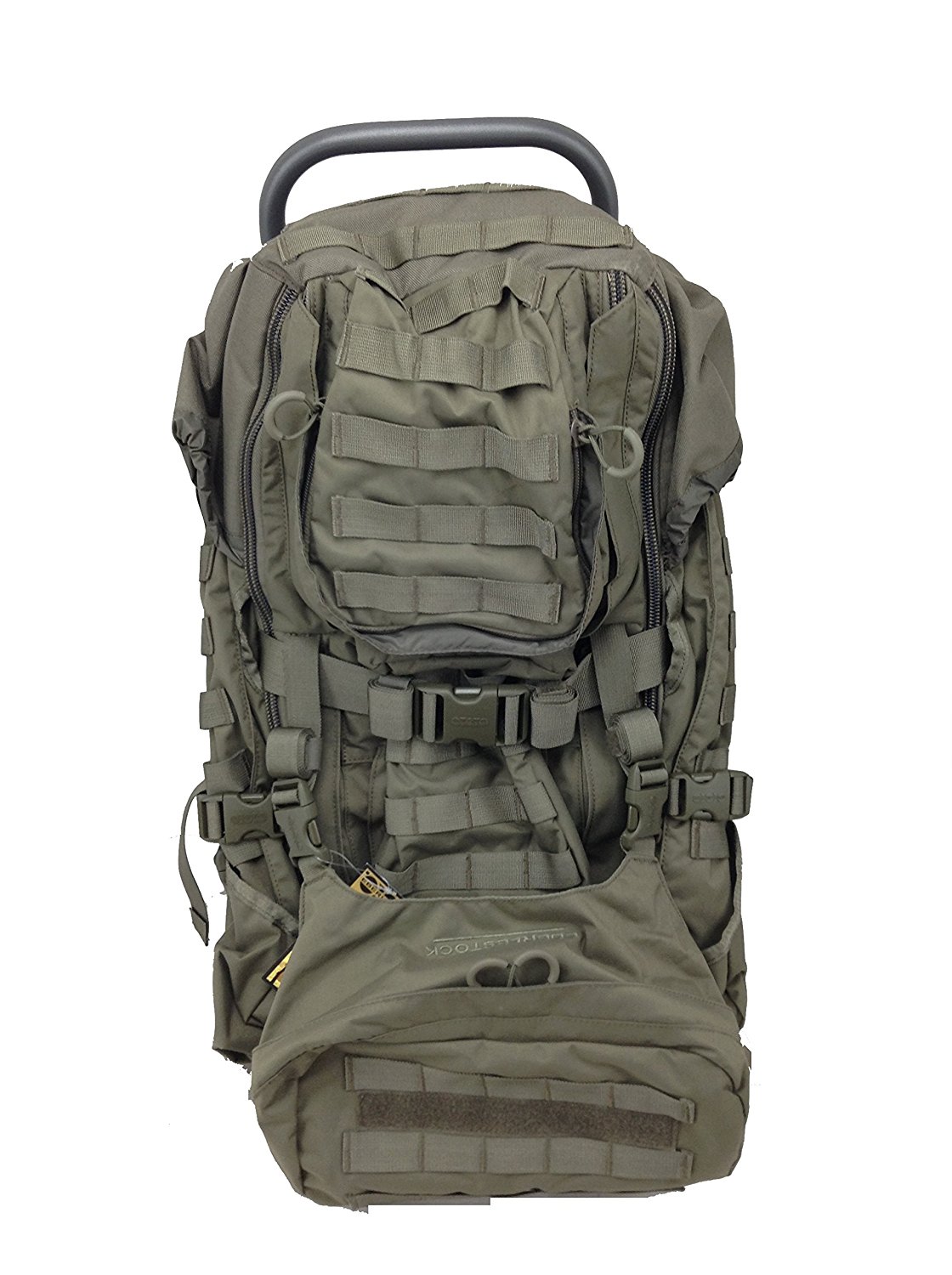 The Operator has elements similar to other Eberlestock packs. Its layout is much like the Phantom, but it's bigger and has a two-chamber main compartment, plus the outer front pockets. Like the Gunslinger, the Operator's pack bag and Backscabbard are sewn integrally together. They've built the pack to satisfy the reality that a classic "drag bag" is rarely likely to be used by a modern military scout or sniper, and some benefits of simplicity and weight savings are gained by integrating the whole package into a single unit.