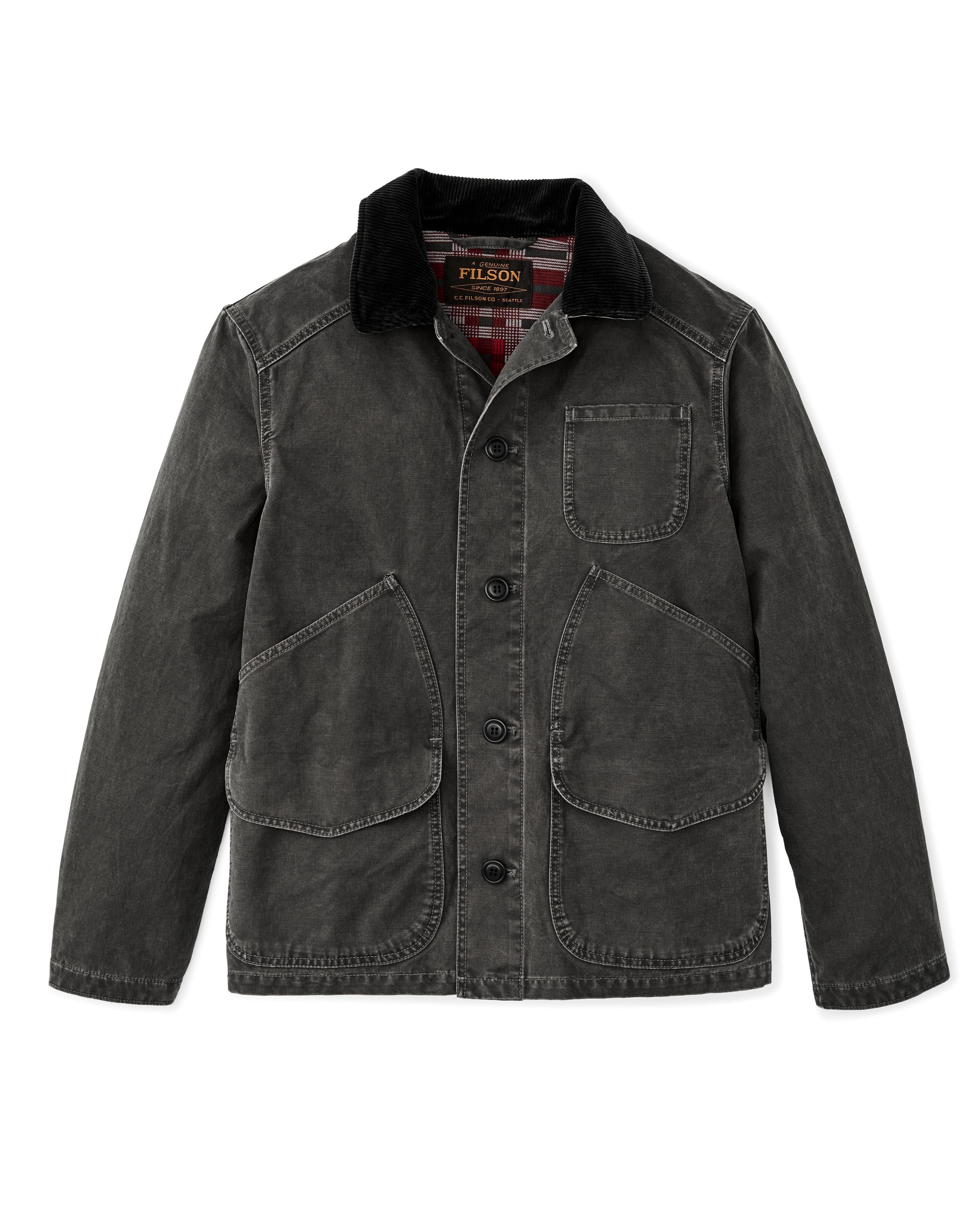 Drawn from Filson's vintage field coatsthe kind sportsmen trusted to push through briars and weatherthis jacket carries that same grit into modern life. Cut from tightly woven 10.5-oz. canvas, it turns wind, brambles, and flying wood chips like a gate in a storm. The corduroy-lined collar softens the blow when the cold sets in. Chip-resistant buttons dont quit. Layered pockets, pulled straight from our archival Waterfowl Hunting Jacket, swallow gear whole. One jacket, built for whatever the day throws your waywhether thats chasing daylight in the field or hauling gear in town.