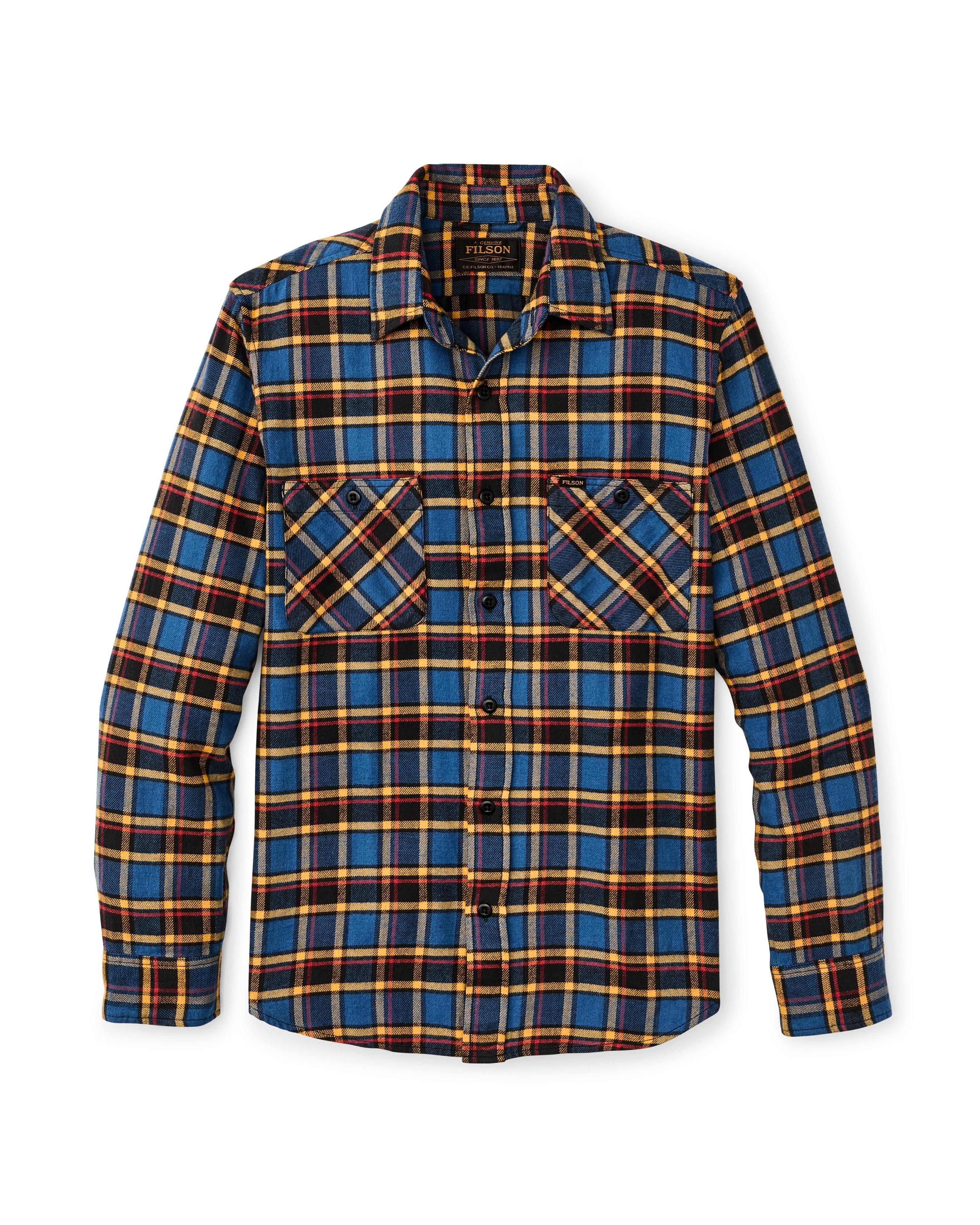 Introducing Filson's new midweight flannel, made with 5.5-oz. brushed cotton and sure to be a go-to favorite. Woven from soft yarns, its breathability and next-to-skin comfort are outstanding. It's modeled after shirts from the 1970s, with colors and patterns from that era. The cut is comfortably relaxed for ease of motion. Chip-resistant buttons secure the front, adjustable cuffs and no-flap chest pockets.