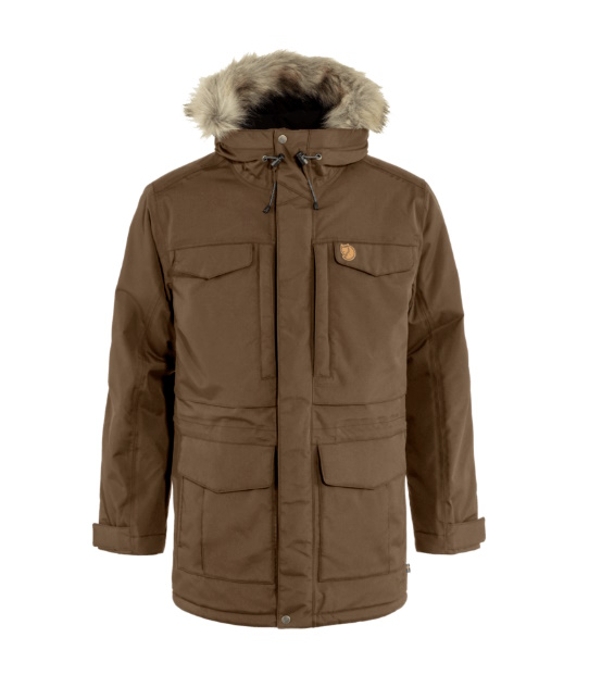Long, generous parka that reaches down over the rear and thighs. A perfect choice for changeable weather conditions; it protects against the wind and rain and the synthetic padding keeps you warm in really cold temperatures. Fleece-lined storm hood with metal wire and detachable faux fur edging. Eight pockets with plenty of room for essential items. Drawcord at the waist and two-way zipper with protective flap. This is an updated version of Fjallraven's classic parka, now with sustainable fabrics and improved features and fit.