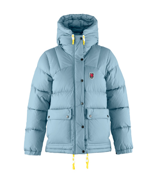 Light version of the classic Expedition Down Jacket from 1974, here with stitch-through construction and 35% less down to suit milder winter climates. The model is also 16 centimeters shorter. Otherwise exactly like the original: generous hood, yellow adjustment cords and spacious pockets. Reinforced with synthetic padding over shoulders to resist moisture and pressure.