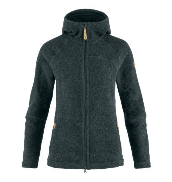 Comfortable fleece with Fjallraven's new, updated fit. Made from a ZQ merino wool blend that combines the temperature-regulating properties of wool with the durability of polyester. Can be worn both as a warm, moisture-wicking middle layer under a shell jacket and when relaxing after a trek. Snug hood with microfleece lining that is soft against the cheek. Full-length zipper in the front with protective flap at the chin. Two zippered side pockets. Attractive women's cut with comfort fit.