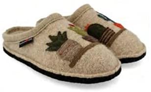 A soft Cactus on a beige slipper by HAFLINGER
