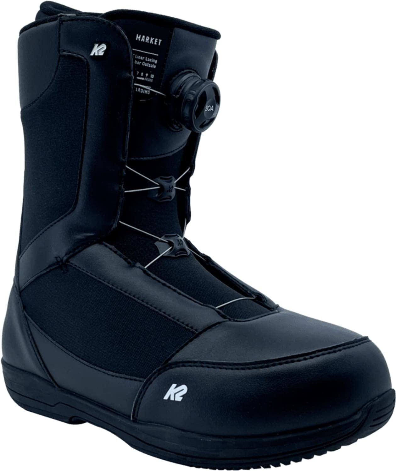 The Fast-In liner lacing system hugs the liner to your lower leg and foot, and the Comfort Foam EVA liner will quickly form to the individual shape of your feet. The liner in the K2 Market snowboard boot also features internal J-bars, designed to hug and support your ankles to up the personalized fit.