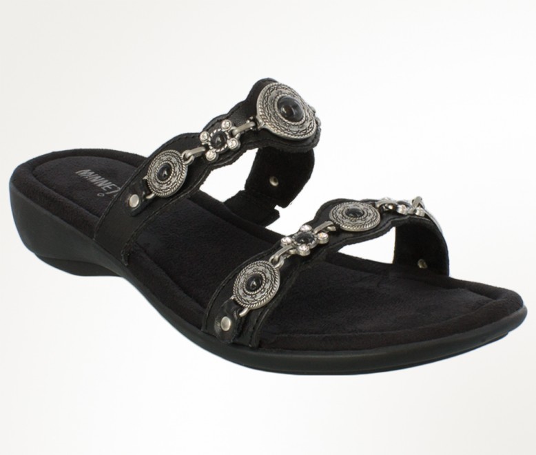 Slide into a casual chic pair of summer shoes. These women's sandals feature two straps accented by silver hardware, and a cushioned footbed to carry you through the day. Featuring 1 ?" outsoles, these sandals go well with everything from shorts to sundresses.
