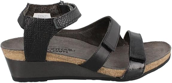 The Naot Goddess is a fashionable wedge with complete adjustability. This style features three hook and loop straps and contrasting leathers. Naot's anatomic cork & latex footbed is wrapped in a pampering suede and molds to the shape of the foot with wear.