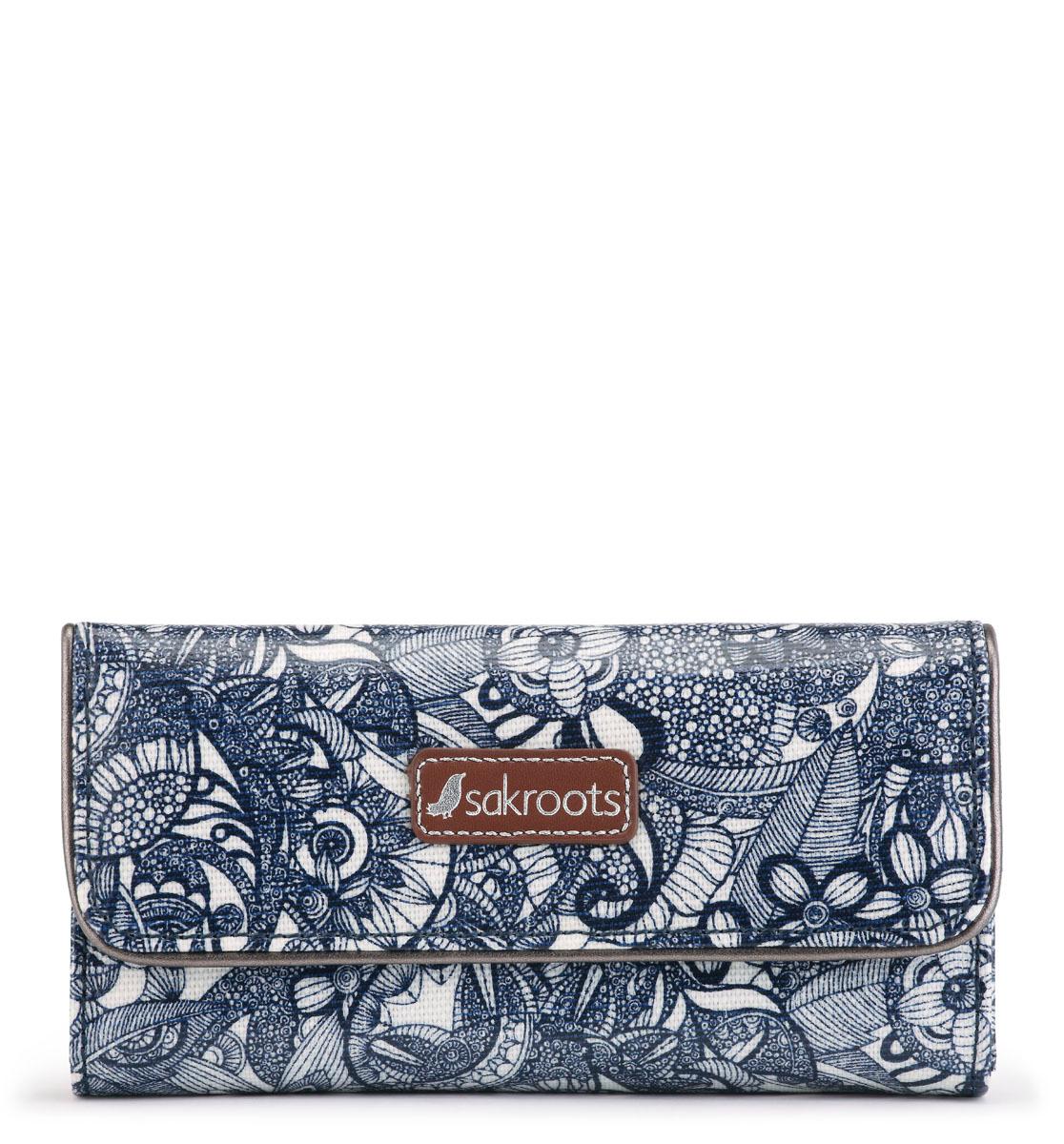 Featuring 11 card slots, 3 large slit pockets, ID window and a zippered compartment, you?ll love staying organized in style with the Sakroots Trifold Wallet.