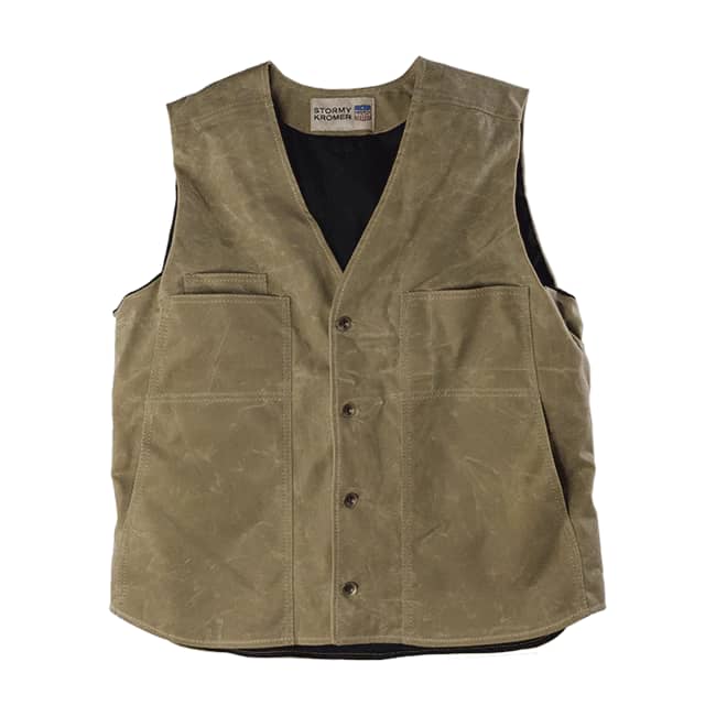 When the weather is a tad too warm for Stormy Kromer's original Button Vest, grab their waxed cotton version. Youll appreciate the same refined details, plus the 10 oz. paraffin-treated 100% cotton duck outer and soft cotton flannel lining. Handy as a layer, or handsome on its own.