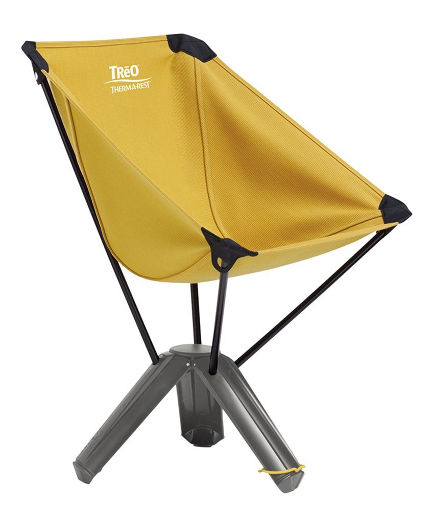 Updated with sturdy yet supple 300D Polyester Rip-Stop fabric, the patent-pending Treo camp chair is incredibly compact, comfortable and strong. It?s built with a realistic seat height and width that doesn?t require a technical plan of descent just to get into. And though it delivers the comfort and ease of use of a big chair, it packs entirely into its own tripod base, making the Treo Chair as easy to bring along, as it is to relax in.