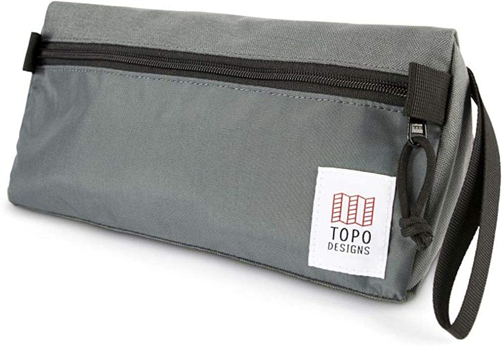 Giant shave kits don't make sense when packing light, and you can't keep using that plastic bag. It's just embarrassing. Enter the Topo Designs Dopp Kit. The triangular shape allows it to sit upright on small hotel shelves and provides easy access to everything you need. The size is small enough for the "travel light" crowd, but roomy enough to hold all you'd need to stay looking good on the road.The pack cloth lining is water-resistant, making cleaning a snap. A wrist strap makes it easy to carry even when finding the shared restroom down the hall at night.All Topo Designs Dopp Kits are handmade in Colorado.